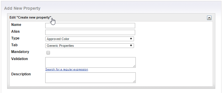 - Tab – use the drop down to select which tab you want this new property to appear on.