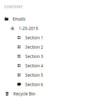 Our Email Folder is at our root, acting as a container for our marketing site. This has our general information on it. We have our email as a child, and the email sections as children to the email.