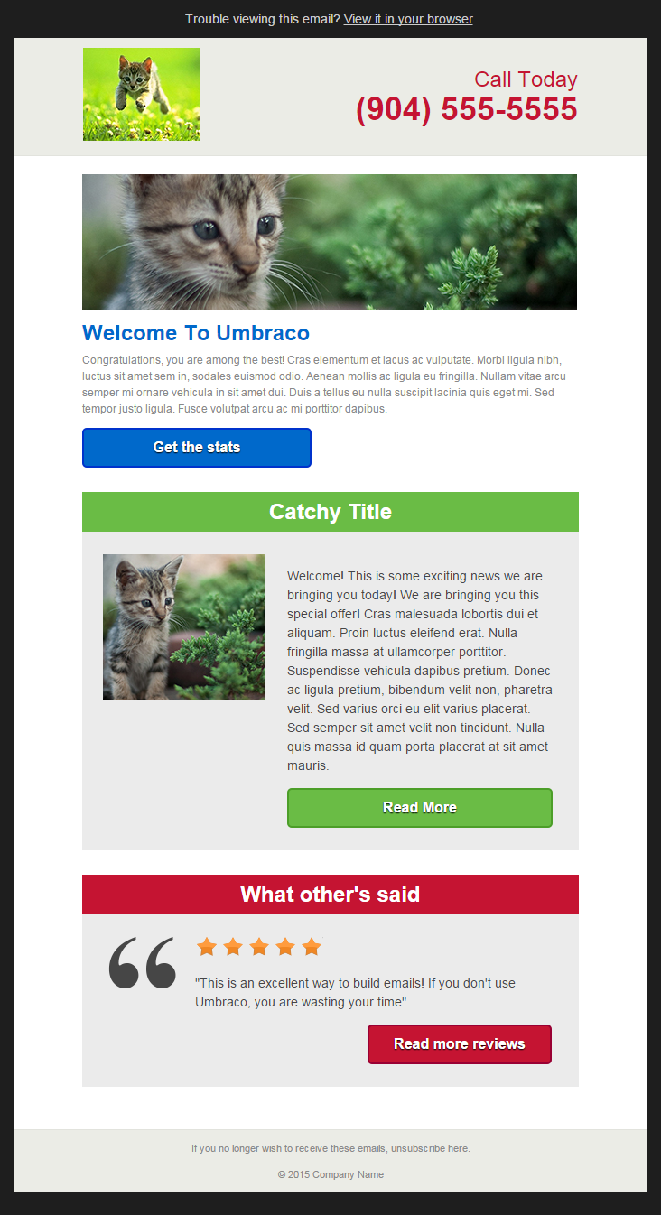 Once you have everything setup in Umbraco you will be on your way to building out emails much quicker than working straight in your markup. The initial setup of Umbraco will take you a bit longer to get the emails built but the time you will make up in the recurring tasks will greatly outweigh this extra effort put into the start. Building your emails into Umbraco can also alleviate some of the work load for more technical team members. For example, you have some not-as-technical people who aren’t familiar with HTML that could go into Umbraco and build emails quickly to send out versus having a developer go into the markup and create new emails every time. You are looking at less headaches, less errors in updating specific content (i.e. title tags) and easier task handling with this route. I highly recommend that you create your recurring web marketing material in Umbraco.