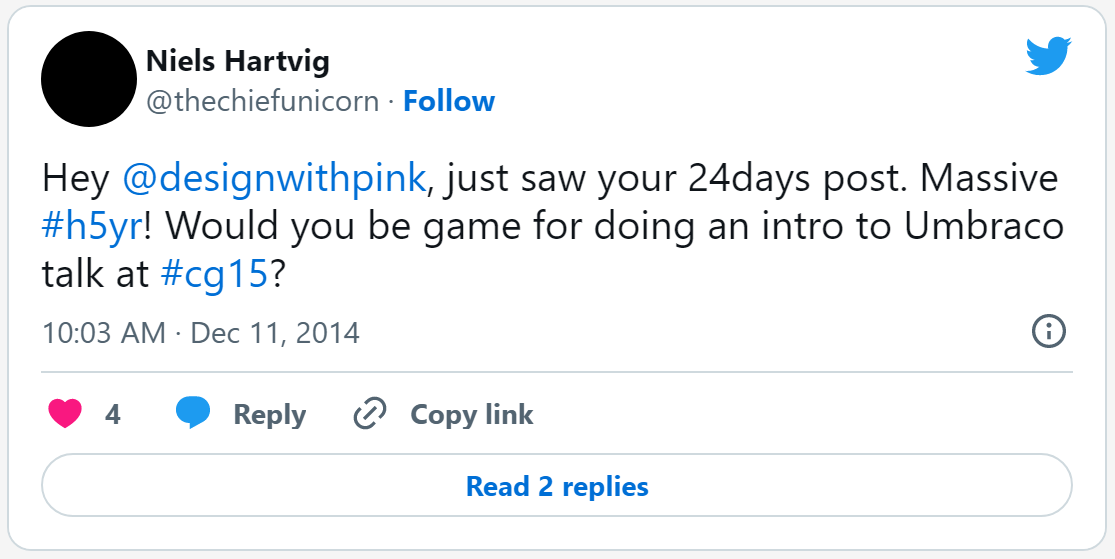 Just in case you don’t know what #cg15 is, its Umbraco’s annual Code Garden Conference in Copenhagen.