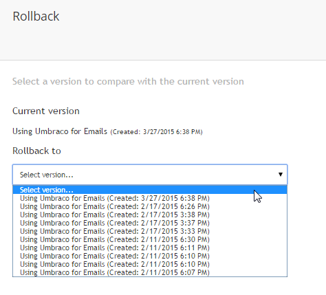 With the user roles, permissions, and notifications setup you never have to worry about making changes to your site accidentally. However if something were to slip through the cracks, Umbraco has a handy roll back feature, as well as an audit trail so that you can find out where things slipped. You can easily see what changes were made and when by color coded edits in the roll back history. This allows you to quickly see what was removed and what was added in this version history.
